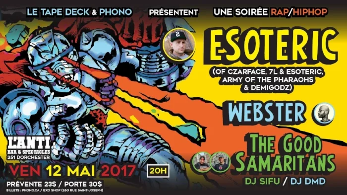 Webster sera en prestation avec The Good Samaritans et Esoteric à L'Anti Bar & Spectacles (251 dorchester, Québec G1K 5Z6) le 12 mai prochain à 20h.